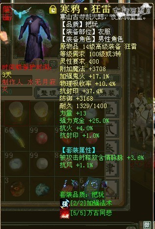 价值3.5E寒鸦男鬼克金全套装备